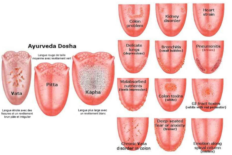 Une langue blanchâtre indique un dérangement Kapha et une accumulation de mucus.